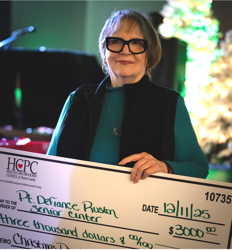 In December the Health Care Providers Council (HCPC) of Pierce County presented a $3,000 check to our Ruston-Point-Defiance Senior Center and the same amount to 18 other Senior Centers in Pierce County!! The monies raised from the 2025 HCPC’s Guardianship Summit, Alzheimer’s Conference, All-Star Caregiver Awards Reception and Making The Link events were distributed to the senior centers.